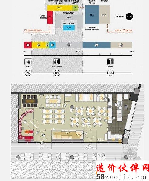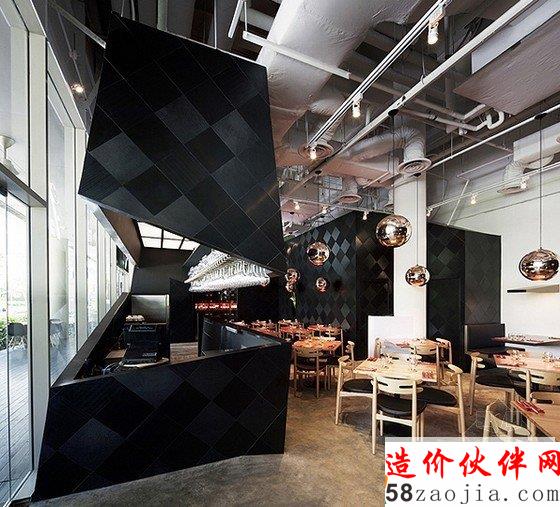 现代工业感餐厅设计U形带黑卷,让人联想到葡萄酒瓶,封装奇异的色彩,设计中带有工业美学。现代工业感Tastings Room品酒餐厅位于新加坡的中央商务区,滨海广场(Marina Square)的心脏地带。餐厅的目标是刷新在新加坡的葡萄酒和美食文化的感知。