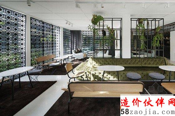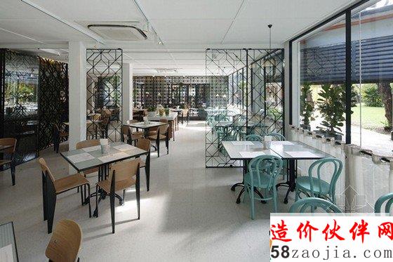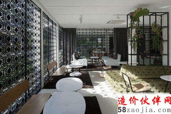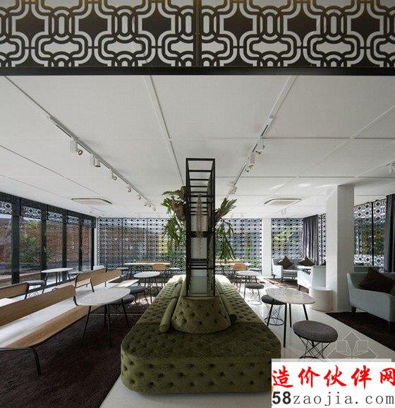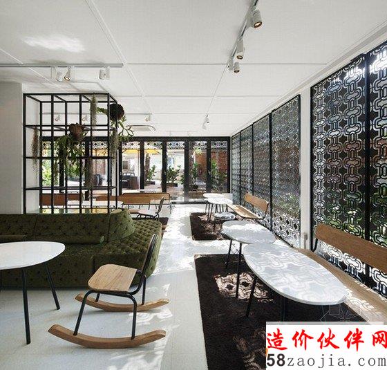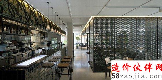 新加坡魅力农场餐厅设计的内部可以分为两个主要部分组成 - 主用餐区和酒吧及饮料部分。新加坡魅力农场餐厅设计响应到客户端的简短灵活的空间安排,折叠金属网隔离的区域,但在折叠起来,打开成一个巨大的空间。仔细一看,这些金属屏幕被切割成图案灵感来自于传统的地砖图案。