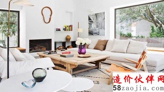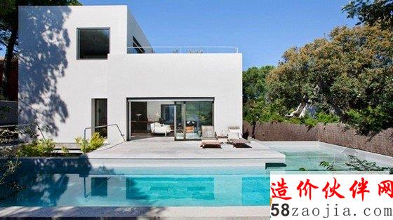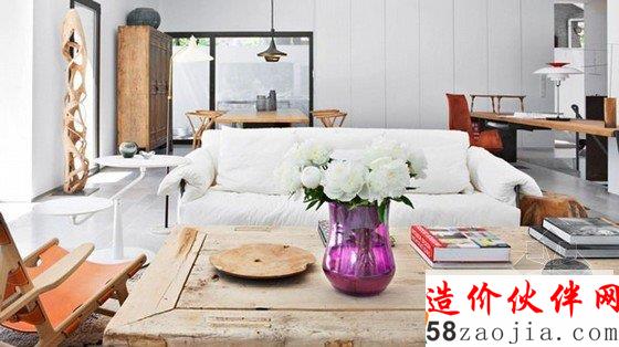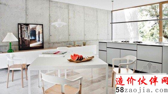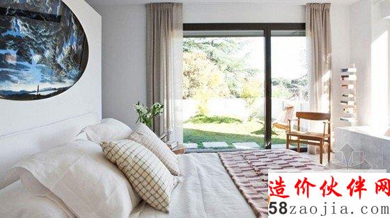 这座办公住宅室内装修位于马德里的郊区,办公住宅室内装修绿树成荫的室内环境,良好的居住环境。室内白色的墙壁和白色的沙发清爽干净,木质的桌子带有原木的自然气息。