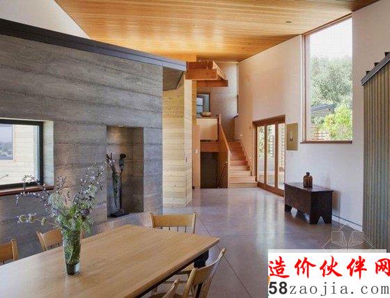 这是一座位于美国加利福尼亚州的Santa Ynez住宅,是一座节能环保型生态住宅装修,是由Fernau + Hartman Architects负责的一个住宅项目。节能环保型生态住宅装修设计旨在创建一个高效节能的家,同时和周围的景观和乡郊环境、相互辉映。室内木质的天花板和木质的桌椅,原木生态,宽敞舒适的空间。