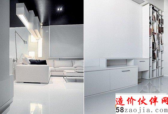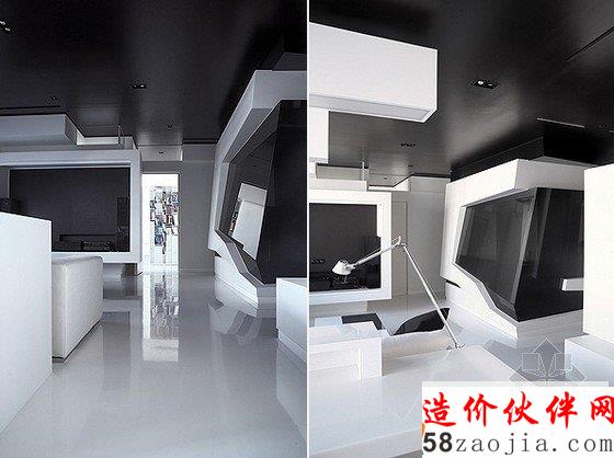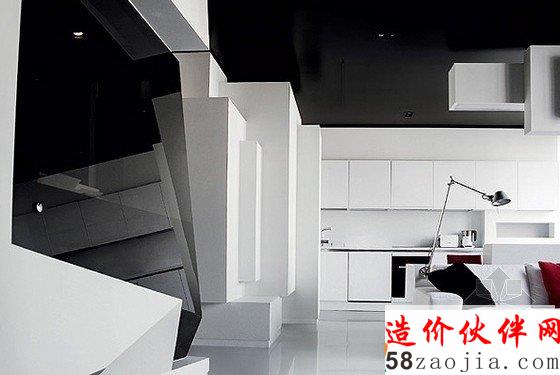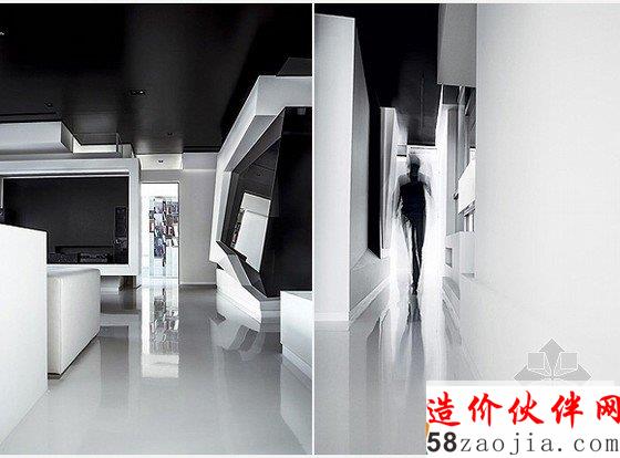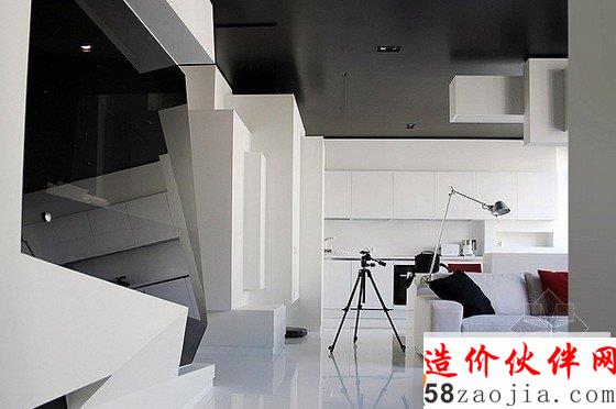 这是一座时尚前卫的公寓装修设计,时尚前卫公寓是一个现代化的有趣空间,白色的空间,内部流动的几何形状,像是一个艺术空间的组合。