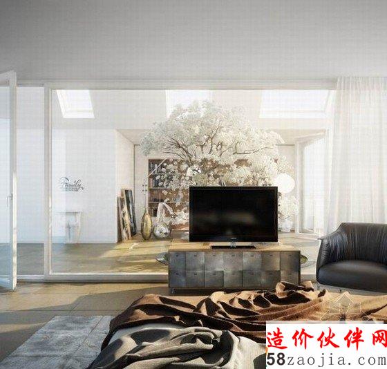 这是一座的独特的家居装修设计,它拥有天窗和中庭。在一个宁静的内部庭院家居设计中,藏有一颗开花的树,阳光可以从照入室内。一组有趣的墙面装饰,一个轻松柔和的配色方案。