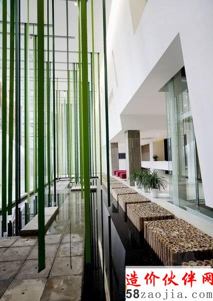 这是位于北京的Mochen Office,舒适办公室装修设计此次方案的灵感源自中国的传统文化。设计师为Mochen Architects & Engineers。设计师精心设计了一个清新舒适的办公空间,白色的灯饰,绿色的长条装饰物让人眼前一亮。