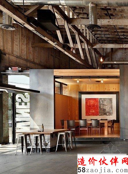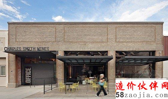 这是一间查尔斯史密斯的品酒室,是由Olson Kundig Architects 精心设计打造的,创造了一个原始的空间,品酒室装修设计采用原始的砖墙设计,突出了原始的建筑美学,和摇滚风格相互搭配。
