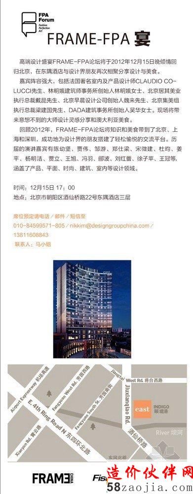 高端设计盛宴FRAME-FPA论坛将于2012年12月15日晚倾情回归北京,在东隅酒店与设计界朋友再次相聚分享设计与美食。