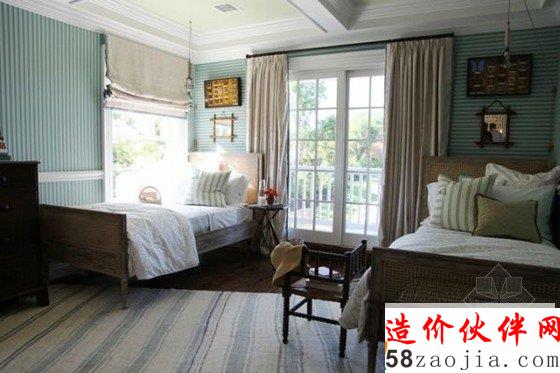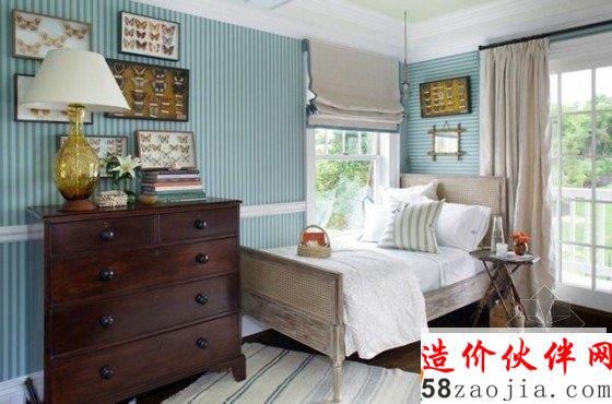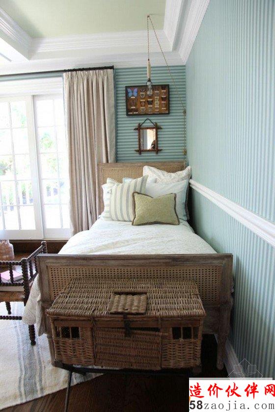 乡村田园风格家装室内设计,让我们更加的亲近自然,让旧房焕发生机。蓝色壁纸装饰,让室内设计清新舒适,在家居的选购上尽量选这一些深色的家具,看似简单的乡村风格,其实包含了非常丰富的自然元素和地域性的文化内涵,家装室内设计自然质朴。
