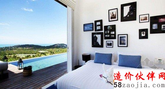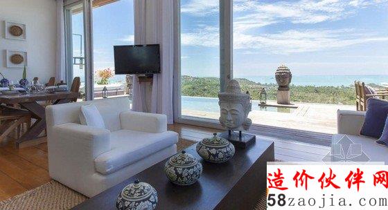 豪华的别墅位于泰国苏梅岛Choeng Mon海滩上的,度假别墅室内装修,充分体现了这里的文化气息,在这里能够彻底的放松与舒适。位于山坡上的位置的这个特别别墅,环绕着茂密的热带花园,以令人印象深刻的板岩墙装饰及亚洲传统雕刻装饰性水池上,独特设计的铁艺大门让别墅更加魅力。豪华度假别墅室内设计三个宽敞豪华卧室,一个开放的奢侈生活区域,里面包括厨房、餐厅和豪华宴会休息室,室内设计功能齐全,可以在这里感受千变万化的日出和日落海景。