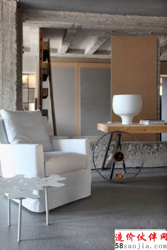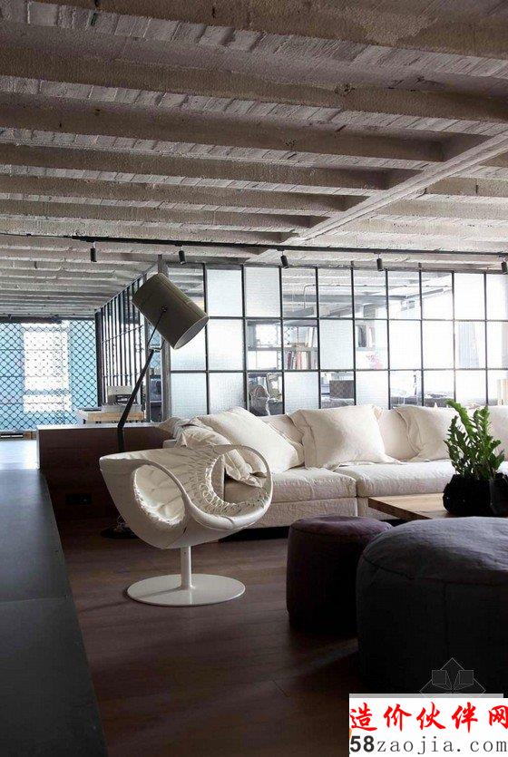 时尚混泥土Loft工作室设计,采用时尚的中性色调,天然的材料运用,暴露的混凝土梁和墙壁,在挑战传统观念下的室内装修设计,个性大胆。休闲和工作区,十分随性自然,细节又很精致,打造这个独特Loft工作室设计。