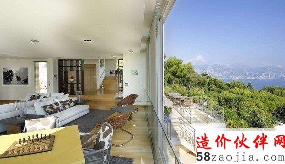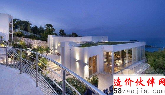 现代度假别墅设计位于法国蔚蓝海岸边上。度假别墅室内设计很巧妙的利用地理环境,美丽的泳池与这里惊人的海景景观环境完美融为一体。豪华别墅室内装饰,最新的配套实施,室内功能齐全,一个大的客厅和餐厅能欣赏180°海景景观,能在这里休闲度假是多么的惬意和舒适。