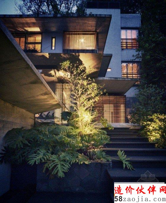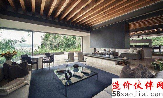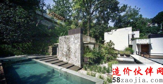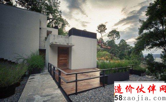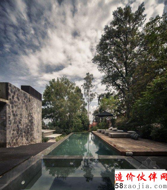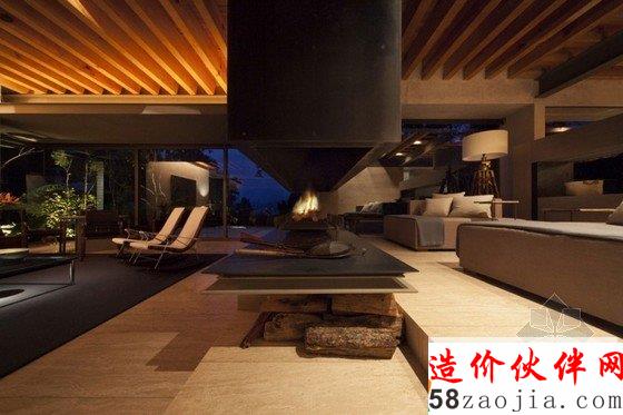 现代舒适住宅位于墨西哥瓦尔德•布拉沃湖。现代舒适住宅栖息在周围被茂密树林包围的山地里, 住宅室内装修与地理环境完美结合,乡村风格装饰,原始裸露石材、混泥土外墙、深色木材搭配,让空间更加时尚与优雅。远离城市的喧嚣,在丛林深处建造一座美丽的花园住宅,是非常美好的一件事。