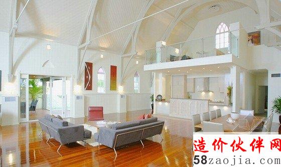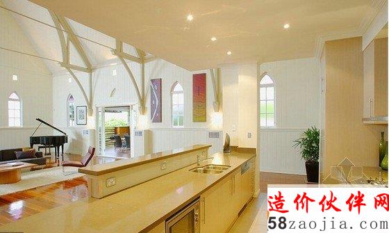 这是一座位于澳大利亚布里斯班的教堂改造住宅设计项目,形似教堂的外观设计,室内豪华而充满魅力,温暖柔和的灯光照明,传达出一种魅力而永恒的氛围。