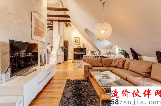 明亮精致阁楼公寓室内装修设计,这是套165平米的阁楼公寓,显得精致温馨。客厅、餐厅以及厨房连成一体,使原本有限的空间变得开阔。而且设计师利用了自然的阳光使室内充满生气。