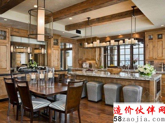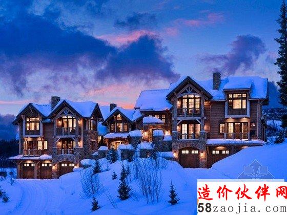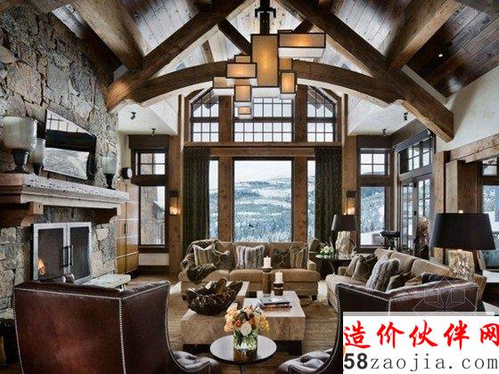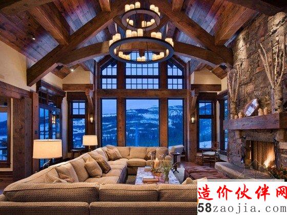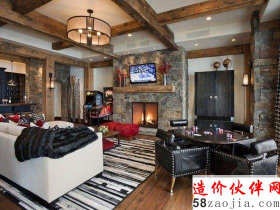 美国童话山庄别墅室内装修设计,每间小屋都配随着许多额外的空间,如录音室,酒吧,滑雪室,图书馆,和6间套房等奢侈生活所需的所有设施。几个盖的露台也可用于各种活动。这座山坡小屋就像是一童话山庄。