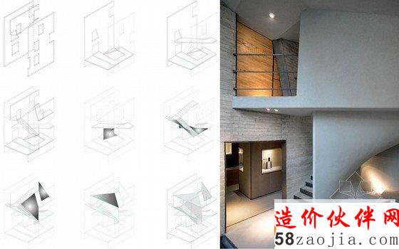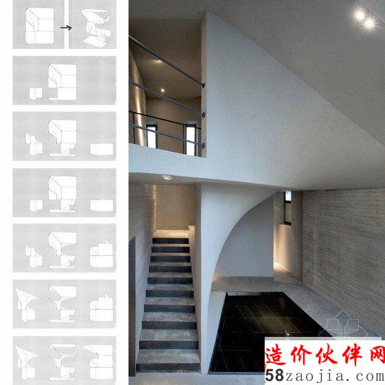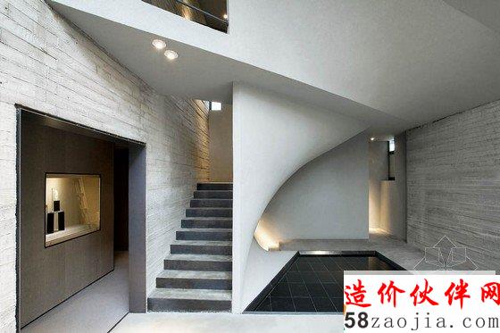 卜石艺术馆位于上海徐汇的城市高密度复合区域中,由办公空间改建而成。由上海的袁烽创盟国际设计,设计构思试图在不破坏原有建筑外部结构的前提下,将原本单一的办公空间打造成一个集合展览、会所、办公等多功能的艺术交流展示空间。面对建筑这一内部功能的置换,我们首先打散了整个建筑空间的叙事逻辑来模糊其使用界面,并将数字几何的概念引入建筑内部,通过从动线折叠到空间折叠,来完成对于空间逻辑的重塑。