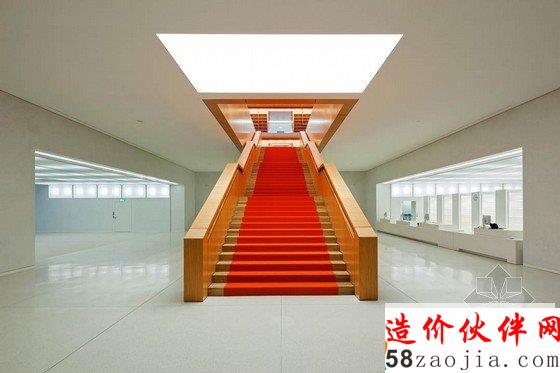 位于柏林的wilhelmine图书馆新阅览区最近终于完工。新阅览区良好的适应了原来的建筑。柏林wilhelmine图书馆室内设计,这个下沉式的宽敞开放阅览空间被半透明的表皮包裹。这层表皮就像一盏神奇的灯,白天为内部引入光亮,到了夜晚,又向外部发出光亮。空间上部主要是白色,宽敞而明亮。下部的色彩是红色和黄色的组合,这是高贵的,可以激发读者阅读激情与快乐的色彩。