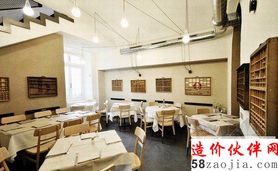 原木味风格餐厅设计,这是一家位于意大利都灵的餐厅,中性的柔和色调,木质的桌椅,散发一种淡淡的原木味,营造了一种温馨和谐的用餐氛围。
