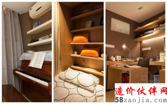 到了周末女儿回家后,区域分割又发生了变化。隔音帘隔开的是郑国民的民乐和女儿的西洋乐,保证两天同时练琴时互不打扰。阳台上特殊的移门则让这里成了女儿的小房间,白天翻起桌板,这就是她的书房,晚上翻下床板,这就是她的卧室,与父母互不干扰。
