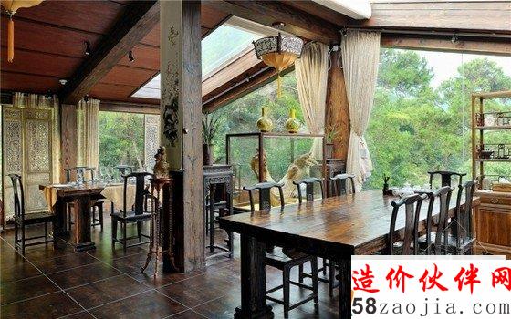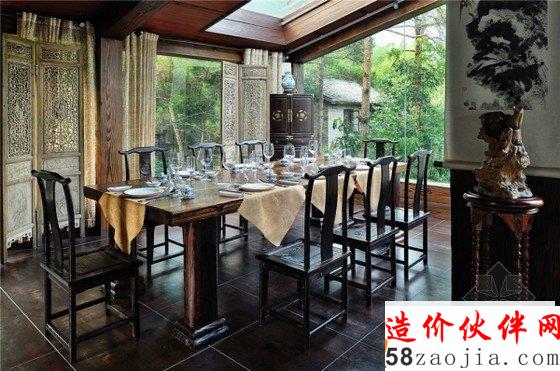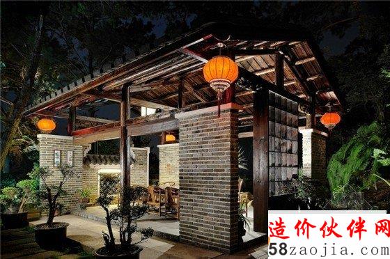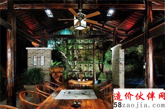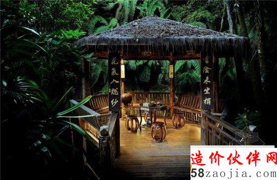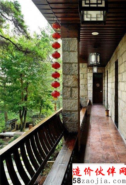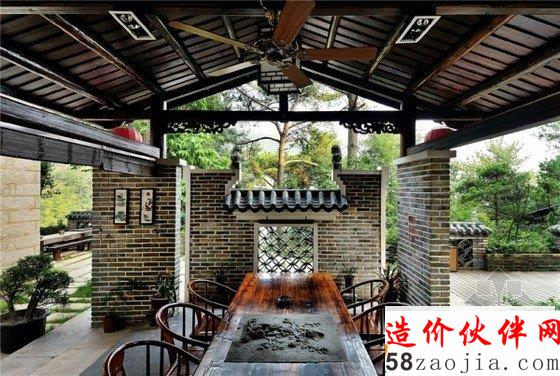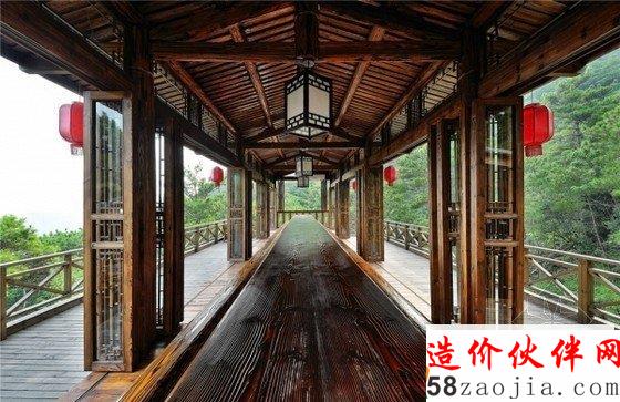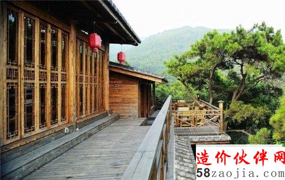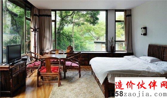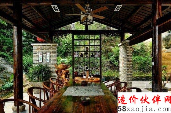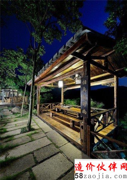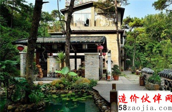 对建筑原结构进行一些必要的改造,主要是两个方面:一个是楼层的改造,一个是建筑外围环境的改造。原楼顶加盖的一层以青砖灰瓦表现出悠远灵动的东方意境;大面积落地窗能够最大限度的把自然带进室内;依地势引入山泉而成的池塘波光艳艳;不远处依山而建的风雨亭在取材和工艺上传承了中国传统建筑元素,在做旧手法的处理后一眼看过去颇有几分似杜甫草堂。通过改造将自然山水与人文建筑更完美的融合在了一起。