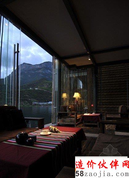 泸沽湖里格半岛阳光会所设计项目位于云南丽江泸沽湖里格半岛,紧邻湖面,位置极佳.建筑依托自然大美,探索就地取材.传统营造,表达对本土人文及自然信息的解读与反映.室内空间结合功能展开,与外部景致相互交融,借景融入,提升室内空间的品质.