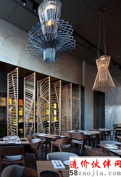 以色列餐厅装修设计,建筑师 Pitzou Kedem 连同Baranowitz-Amit 工作室耗时一年半完成了这家餐厅。亚洲文化餐厅装修设计内部主要根植于两个主题——中国古代哲学的五大元素(金、木、水、火、土)和 烹饪DNA 菜单。内部并没有使用传统的文字就能带来一种亚洲的感觉,空间使用基本的螺纹连接。半开放式的厨房和欲露还休的竹门巧妙地维持了平衡。