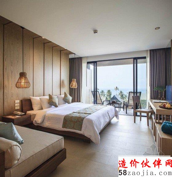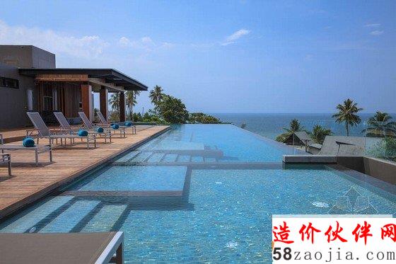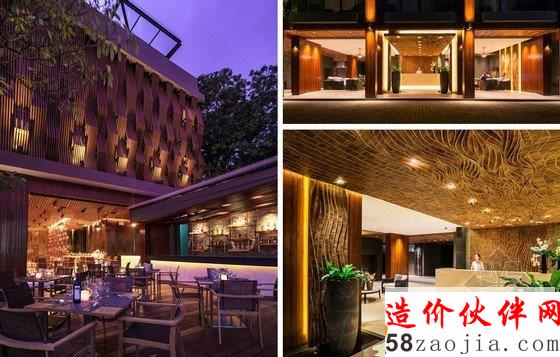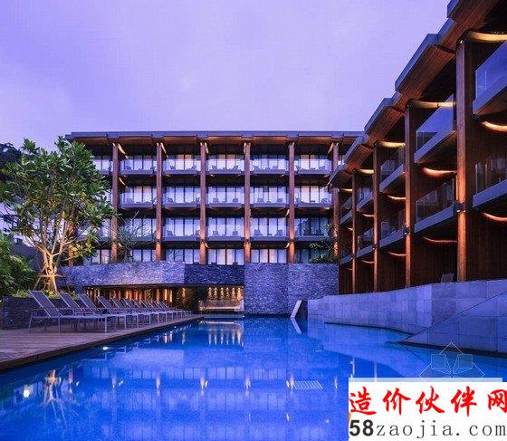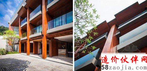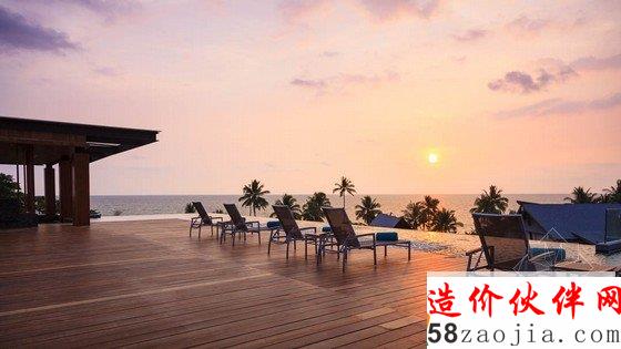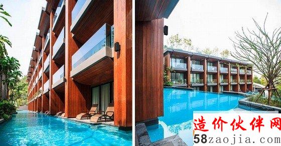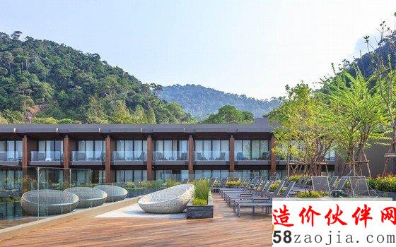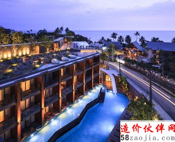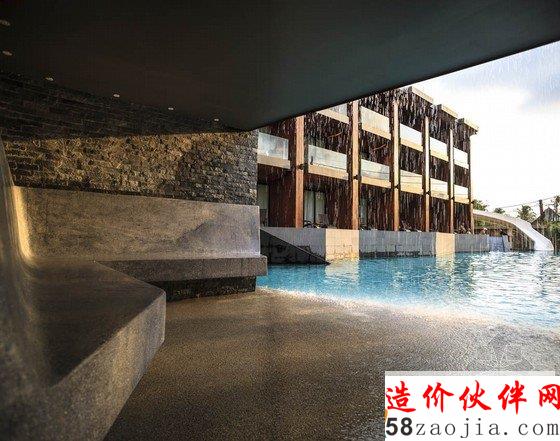 泰国海滩度假酒店设计,这个度假酒店位于泰国最受欢迎海滩附近的一个拐角地上。酒店功能空间有游池,餐厅,酒吧,日光浴甲板。酒店室内装饰材料都是运用当地的材料,自然舒适。这里得天独厚,距离海滨不到100米,但挑战在于怎么样在这一块被道路切分的三角地块上安置好酒店的各项功能,并让客人仿佛置身于海滨。根据地形,设计师精心部署,让所有的客房朝向大海,同时在三角形中间放了一个30米的泳池和一个3.5米高的人工瀑布,一楼和下层的客房客人可以推开门就跳进泳池。裙房的屋顶上面是一个40米的无边泳池,一头接壤酒吧。在这里,泳池仿佛与远处的海天连成一气。酒店立面元素引用当地木机床织布的一些要素,光与阴影交织穿梭在酒店空间的各处角落。
