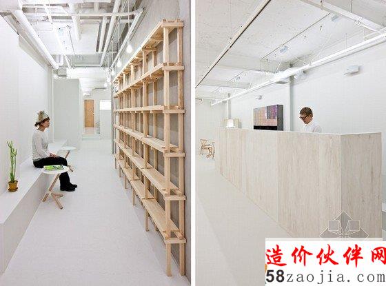 这所位于日本大阪的美发沙龙拥有一个细长的空间,深度达到28米,宽度只有4.4米。建筑师有效的利用这个长宽比相当有差距的空间,制造了各种功能场所。抽象纯白色空间中排放着原木家具,建筑师沿着墙面打造了一个储物格。镜子,照明灯具,美发用品主要在这一面上各就各位。这个清爽的空间是建筑师同业主共同讨论的结果,期望业主在开业五年后,第一次扩大自己店面时的这个全新的设计,能成为其事业发展的推力。