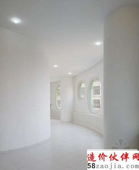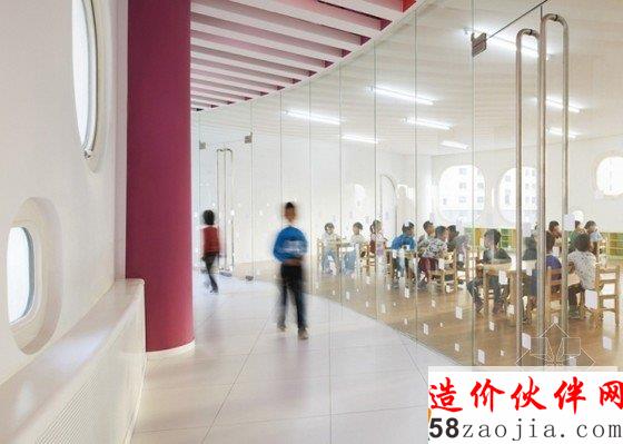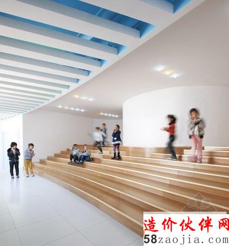 北京工作室SAKO建筑师使用的所有颜色的彩虹幼儿园,在中国天津这个甜甜圈形的运动场,教室和屋顶花园。日本建筑师迫庆一郎的带领下,SAKO设计回路幼儿园压扁的圆卷,每间客房弯曲,甚至连窗户都圆角。一共有18种色调的彩虹调色板,包括在天花板和窗户周围围绕建设毕业。该幼儿园是三层楼高的教室变通其周长和操场在其中心。 这些措施包括在一楼的露天甲板,而底楼洋溢着五颜六色的列和分层的平台包含了一个错层的室内游乐场。玻璃漏斗把灯降低到较低的楼层,,创建三个圆形的庭院,可用于不同的活动。一个巨大的弓片通过侧面的建设,以创建一个宏伟的入口,对称的楼梯通往一楼的庭院。 一个圆形天井的正上方,使轴的光通过的人的头上。循环屋顶人造草坪覆盖,为孩子创建一个额外的游乐区。 四室外楼梯导致了它在不同的色调,每个着色。每个游戏室在三楼朝向阳台,与儿童的楼梯可以上去屋顶花园。 各种颜色的墙壁,地板和阳台的扶手上使用,这是这家幼儿园的主要特征之一。在正门通过公共楼梯步行到二楼,有一个室外庭院,朝向它的所有的教室。整个庭院是大多数成年人在可见光范围内。 这是一个美妙的空间供孩子们玩耍,享受清新的空气。此外,根据室外庭院设有一个室内庭院多种用途。 它有3个圆形中庭,上水平,为更好的自然采光和儿童在恶劣的天气条件下,创造了室内的演奏空间连接到室外的空间。每层楼的天花板在18种不同的颜色,白色的百叶窗板的天花板下。 颜色变化可以看出在走廊里散步时,透过百叶板之间的差距。 也有18种不同的颜色列在庭院里,孩子们可以使用这些颜色,找准位置。