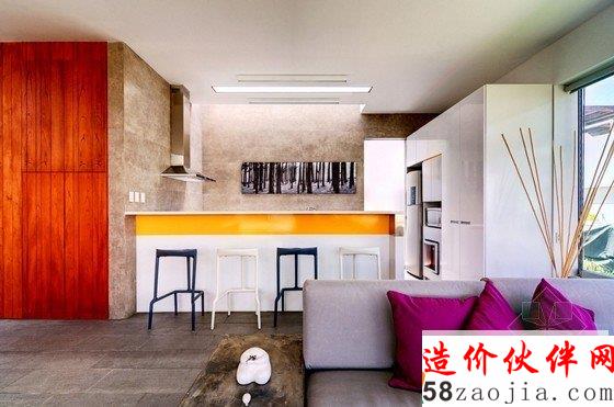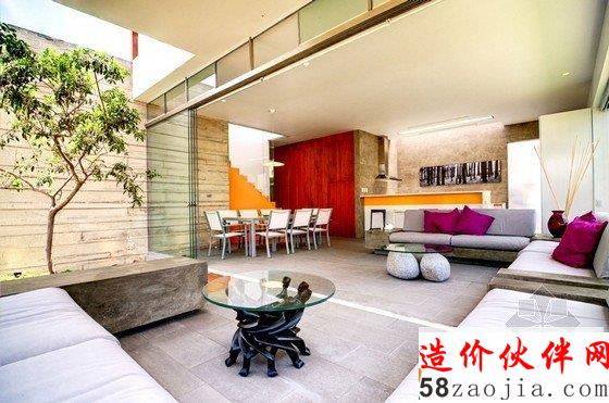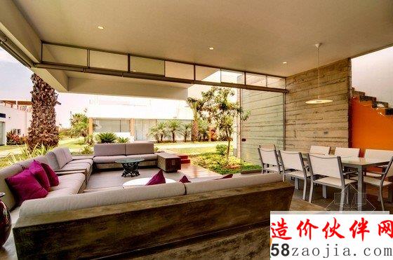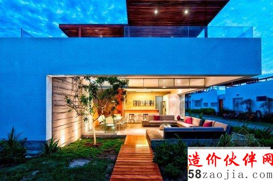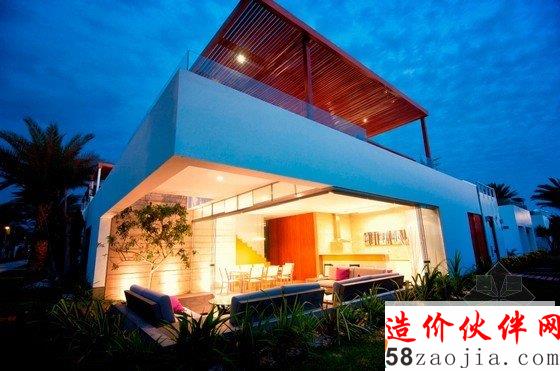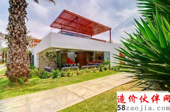 这座拥有白盒子般外形的住宅坐落在秘鲁利马,住房周围都是茂密的植被,环境优美,由Martín Dulanto Architect于2012年设计完成。一楼的一大块空间被切割开来,采用开放式布局,客厅、餐厅、厨房及阳台都集合在其中,可以零距离地享受大自然的气息,房屋的装饰风格虽偏向质朴,但多变的空间布局及恰到好处的色彩运用也使其不失活力。住房最吸引人的地方在于其拥有一个包含客厅、餐厅、游泳池、休息区及烧烤区在内的宽大的屋顶阳台,上方采用红木支架进行遮挡,进一步烘托了休闲和娱乐的氛围。