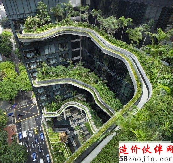 处于新加坡市中心的皮克林宾乐雅(PARKROYAL on Pickering)凭藉其创新的花园酒店概念及多样化节能设计,现已於一片令人期待、备受讚叹的掌声中开业。由来自WOHA国际一流的设计师操刀,皮克林宾乐雅采用花园酒店理念,并贯彻节能特色。这座“花园酒店”拥有面积约 15,000平米、楼高四层的繁茂园林、瀑布和花墙,是酒店总占地面积的两倍以上。除了多种姿态各异的植物群将酒店院落装点得格外美丽,皮克林宾乐雅是新加坡首家使用太阳能电池供电的零耗能酒店,更采用综合性节能节水措施,例如使用光线、雨水和动作感应器,以及集雨和NEWater(循环系再用水)。从设计及装潢中,不难发现多以天然素材如黑木材、石砾、玻璃等配搭为设计概念,并用上从外透射的日光营造大自然的和谐感。