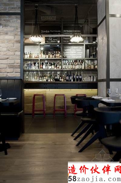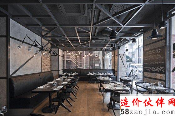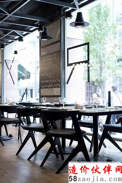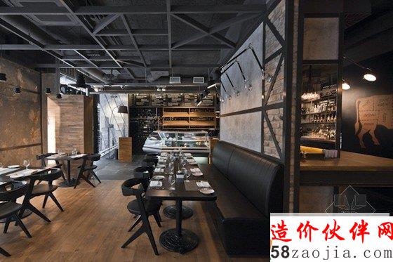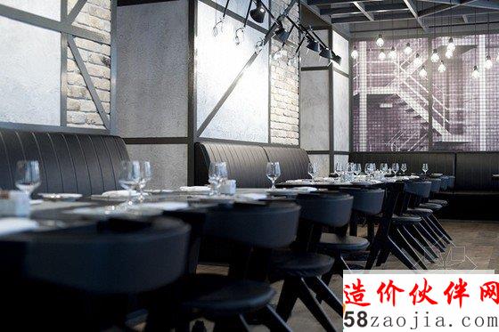 关键词:牛排酒吧餐厅设计 黑色材质装饰餐厅设计