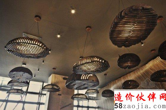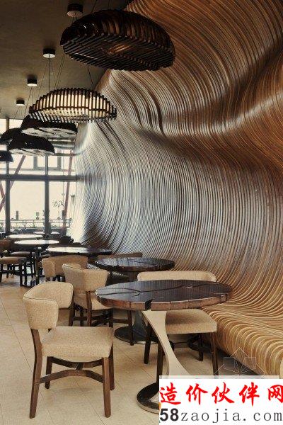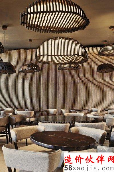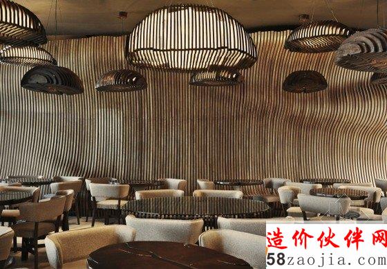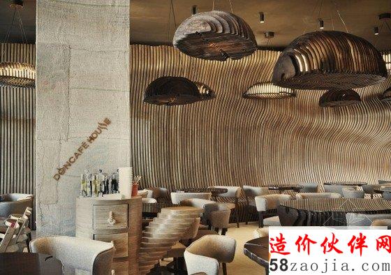 唐楼咖啡厅装修设计,为设计灵感的想法源于麻袋装满咖啡谷物。酒吧的墙壁装咖啡的麻袋,“胶合板”类型的木材,纺织麻袋咖啡支柱之间都涂有有机的形状和颜色。表和悬挂吊灯代表一字排开,以产生非对称的印象咖啡麻袋里面的咖啡颗粒。分隔墙具有双重功能,装饰性和功能性。其有机的形状由最有统治力的一部分的前提下,使坐在不同于其他任何一个在日常生活中遇到的独特感受。胶合板元素单独设计。这是因为用于创建一个完整的有机的形状,每个元件都需要单独设计。