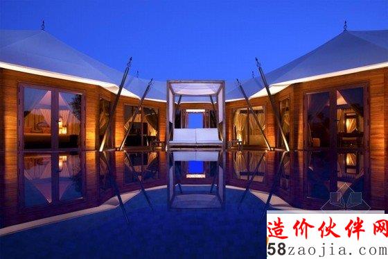 阿拉伯联合酋长国阿尔瓦迪悦榕庄这是阿联酋第一家全部别墅都自带私人泳池的度假村,设计师将传统阿拉伯式建筑特色融入现代风格, 从受当地贝都因部落及游牧生活所启发的帐篷设计,到传统泥砖建筑,加之阿拉伯风味的花格木、特殊图形、精细的阿拉伯雕刻图案以及较高的天花板,在连绵起伏的沙丘上创造出天衣无缝的沙漠度假享受。哈伊马酋长国是阿联酋最北部的酋长国,与阿曼接壤,相比迪拜与阿布扎比,虽然没有那般的丰富资源,却有更壮观原始的自然景观红色的山脉、茂密的农田、连绵的沙丘,喜爱亲近自然和冒险的富翁们会驾车从迪拜来到这片沙漠中的绿洲。占地100公顷的度假村中,其中有60公顷是自然保护区,周围长满了坚韧常青的牧豆树,这里是阿拉伯瞪羚和大羚羊的家,客人可以非常近距离地观察这些温和的动物,喜欢刺激的人则可以在这里学习养鹰术、骑骆驼、在沙漠上开车奔驰、或乘阿拉伯帆船随着河流蜿蜒而行。