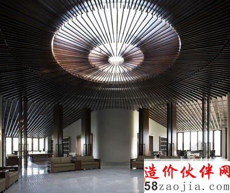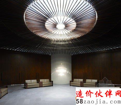 SAKO建筑师设计的北京星号酒窖及餐厅设计,此形星号的餐厅和酒厂在北京附近的一个湖的中心而一个酒窖占用地下室,木材复合建筑是由 SAKO 建筑师设计中的五个翅膀每个不同的职能中。扇削减通过的五个翅膀第一。大堂位于之外,带领进入中央大厅与圆形天窗开销。酒陈列室和栏载于第二个翼,而第三个包含的餐厅,餐厅里。这些空间的两个开出去了到矩形的梯田,再加上其中一个项目出跨湖的表面。第四翼包含一系列的私有函数间客房,除以砖墙壁与差距,让光线通过,并最终翼包含的工作人员和厨房设施。