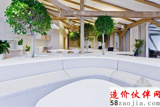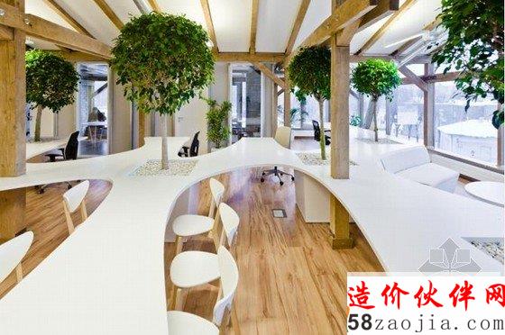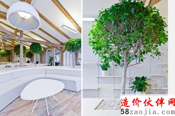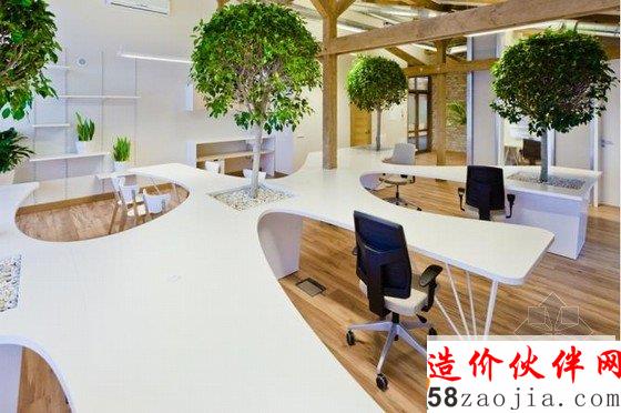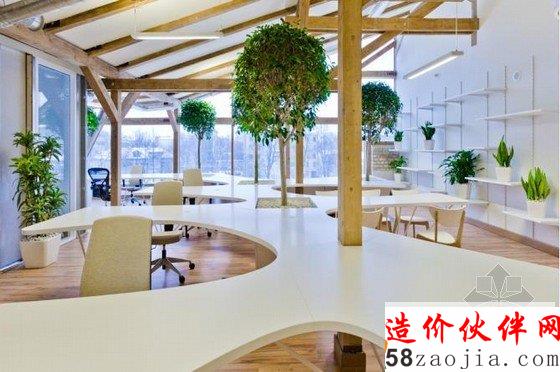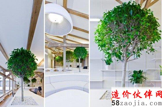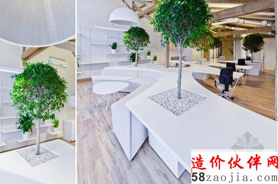 loft绿色办公室设计,有没有尝试过这样一种不同风格的loft 办公室?loft 的优势在于层高与流通的空间,根据空间设计不规则的办公桌,在上面种上树,这两个优势就得到了充分发挥。整个空间有一种缓缓流动的活力,自然地循环着。