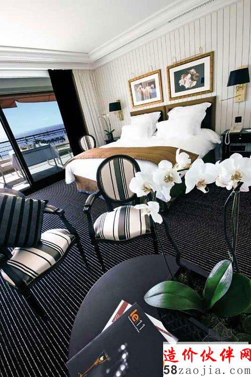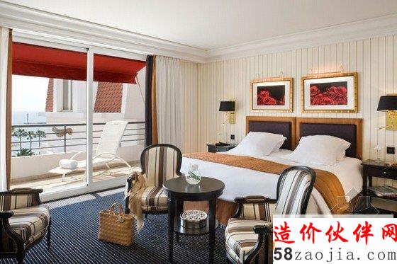 转角拾阶而上,终于可以进到房间里面。因为面朝大海,巴里耶尔马捷斯蒂克酒店几乎每个房间都能够看到迷人的海景。视野中,美丽的拉克鲁瓦塞特大 道(Boulevardedla Croisette)两侧,曲线优美的沙滩海湾和风格迥异的雅致酒店,与蔚蓝的大海和高大翠绿的棕榈树交相映衬,营造出了一种特别的宁静。一眼望去,不能 不说也是一种诱惑。当然,奢华,大概还是甫入房间最直接的感官触动。巨大的观景窗,凹入房间的漂亮阳台,开放的格局,温暖的色调,带有明显装饰艺术风格的外立面,看上去和谐又统一。而设计师也充分利用了明亮的光线和壮观的全景,绝对不会造成任何视觉上的侵犯。