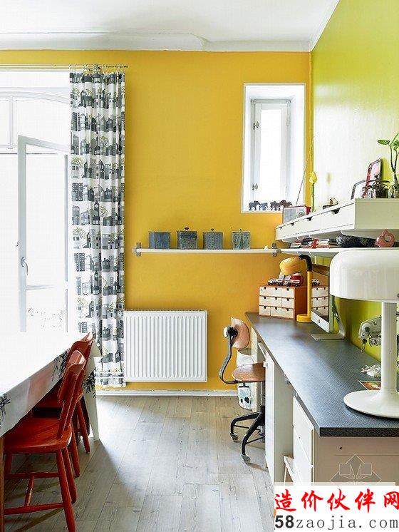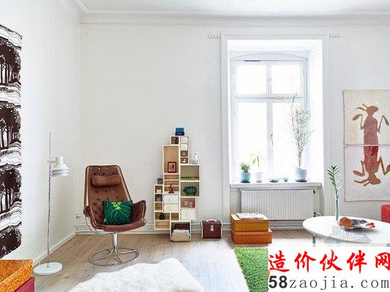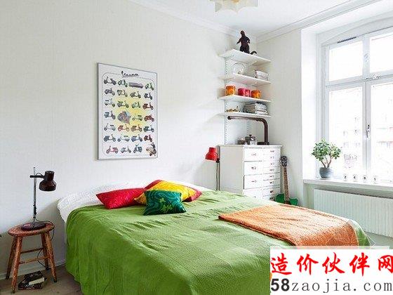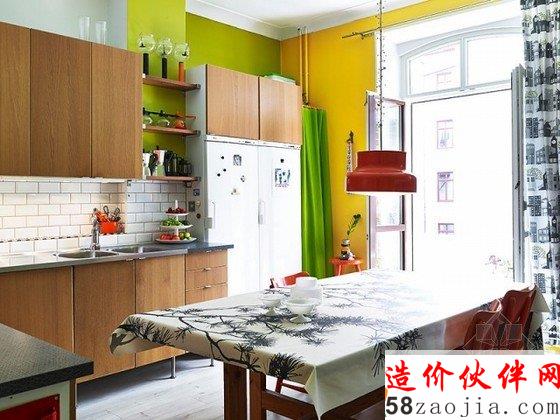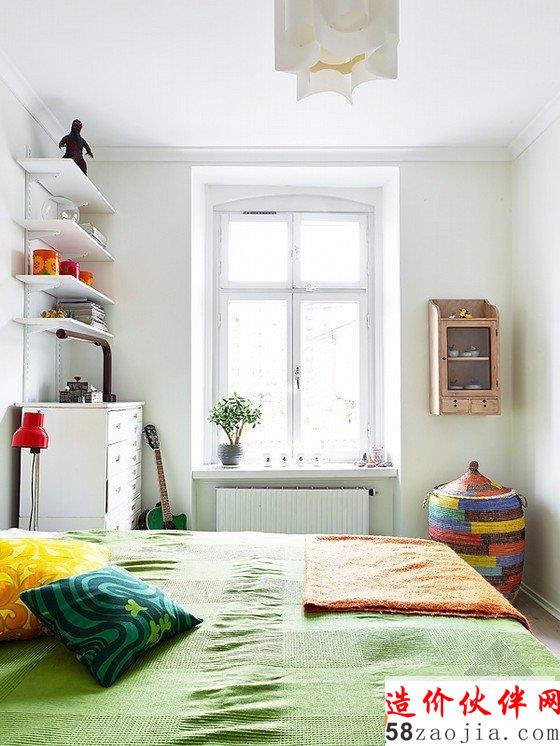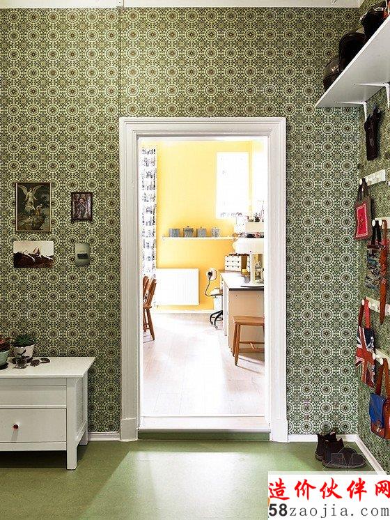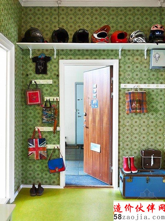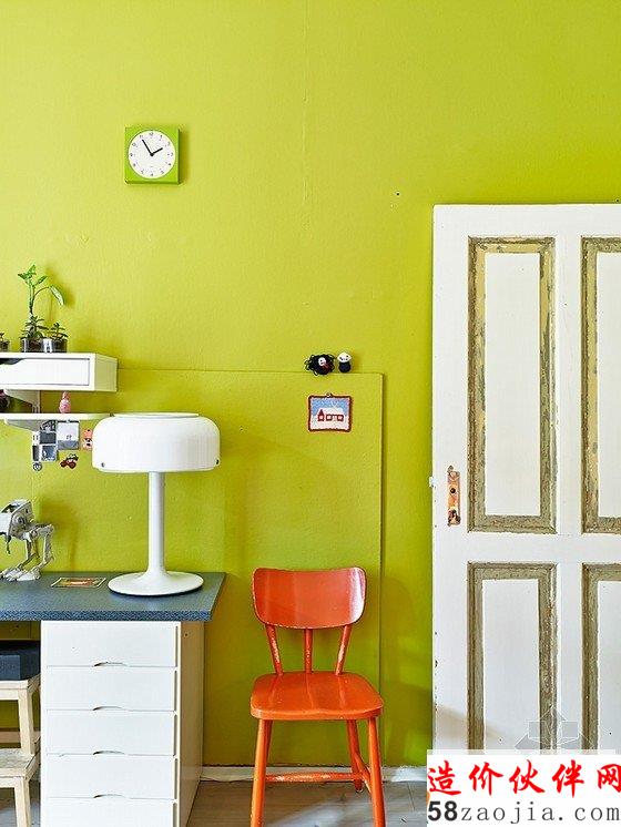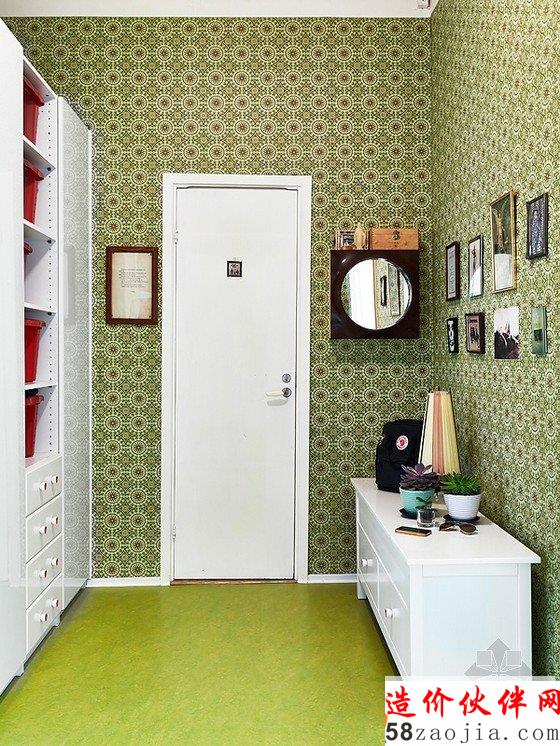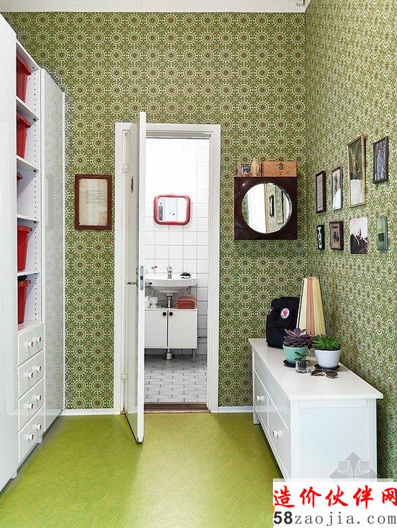 这是一个大约70多平方的公寓设计,绿色总归给人一种清新雅致的感觉,整个公寓空间内有着明亮的颜色,给居住者非常舒适的视觉感受,翠绿色点缀让紧凑的空间有了生机。