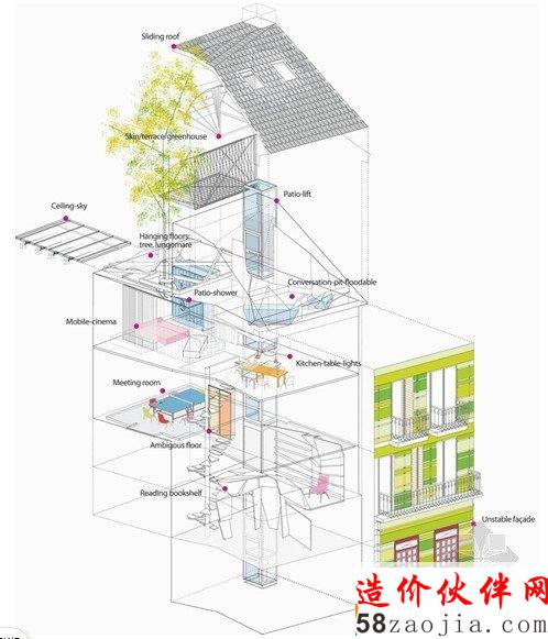关键词:蓝色钢架居住空间 SM3多变住宅