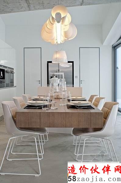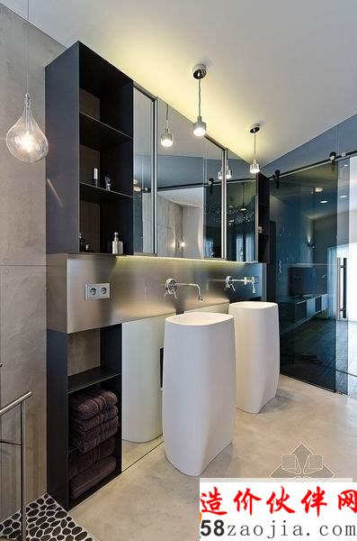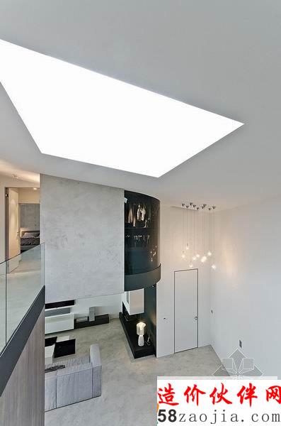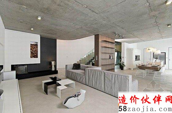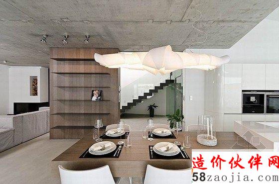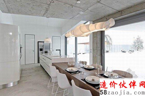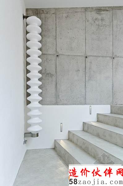 由OOOOX公司设计的现代住宅位于捷克Osice,设计的核心是简约。整体线条简洁流畅,充满现代感与冲击力。天花板直接使用大面积的灰色混凝土,纹理自然丰富,并且以不规则的形状倾斜着。功能分区开放清晰,体现出阳刚与理性。灯具是整座别墅的一大亮点,充满了艺术感与创造力。