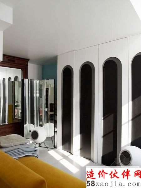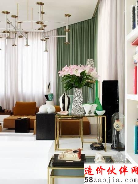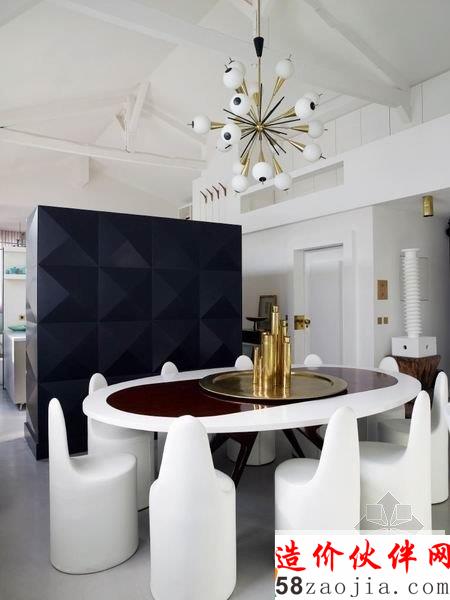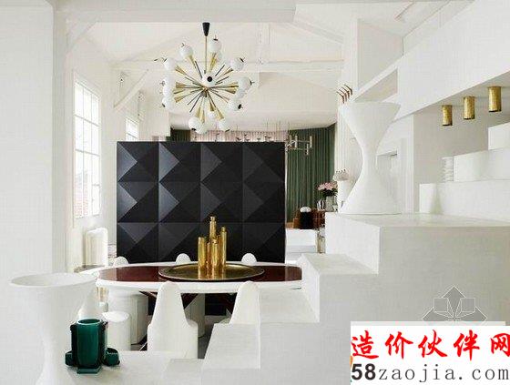 纽约时尚设计师 Yvan Mispelaere 的家,位于在一个荒废的马戏团里,黛安·冯芙丝汀宝的明星创意被改造成一个时尚优雅的现代空间。首先,空间的配色丰富多彩,却又十分淡雅清新,奶油白的主色搭配抹茶绿、磨砂黑与金黄色,举手投足流露出一种法式的高贵与浪漫。其次,这里的装饰品实在太多元了,色彩比较相似,风格也很协调,看得出主人有自己独特的品味。灯具、家具、配饰无一不充满艺术感。厨房被包裹在一个钻石切割立面的“黑匣子”中,低调的奢华感令人折服。