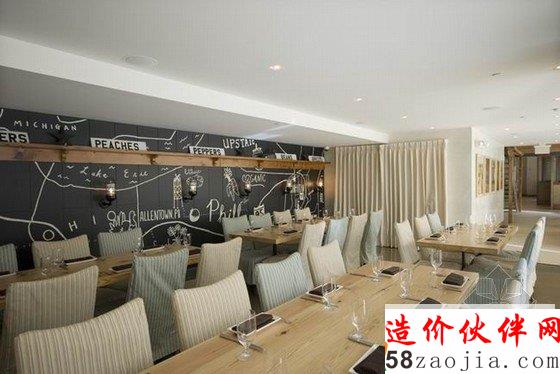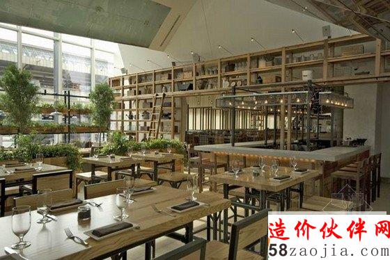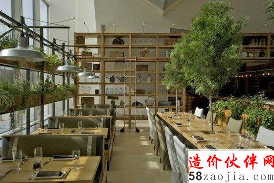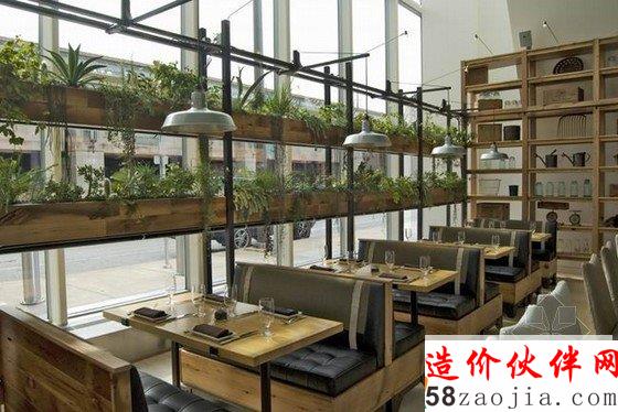 在美国费城的JG餐厅,原木色调的木质桌椅,舒适自然,木质的储物架摆满了瓶瓶罐罐,似乎在带来一些生活气息,清新典雅的椅套让人有一种说不出来的亲切感, 除了充满生机的植物墙,在这里没有多余的配饰,一面随意涂鸦的墙又在提醒人们,在这可以放松心境,好好享用美食.