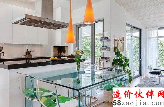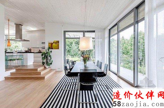 这座斯德哥尔摩精品别墅,与周围的自然环境很和谐的融为一体,561平方米的空间,白色的墙壁与屋顶再加上巨大的落地窗,使整座房子看起来都明亮极了,淡色的木质地板使人觉得舒适,自然。现代化的厨房又充满了时尚气息,炫目的洗手间在打破北欧风的常规。人们很难不佩服北欧的家居设计方法,注重细节、和谐与舒适。