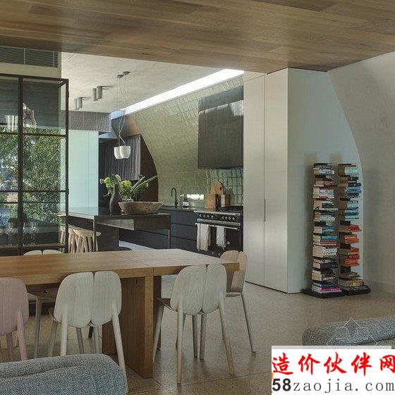 澳大利亚住宅设计2013得奖作品,Park House整个建筑充满了设计感,自由流动,却又毫不做作从植物过度到房内,不需要经过颜色渲染的墙壁和大理石地面,部分的木质屋顶和橱柜都在昭示着它和自然的融合,淡淡的烟灰色系沙发带来气质感,没有多余的色彩和配饰,一切看起来却又那么的和谐,美妙。