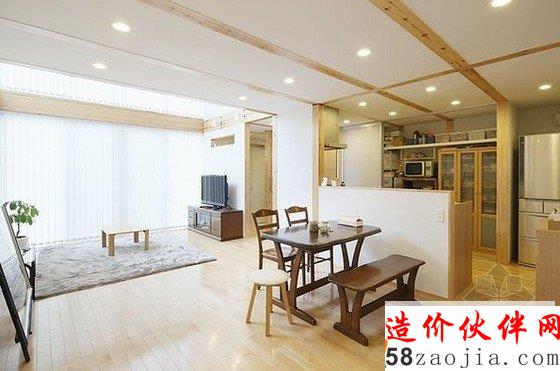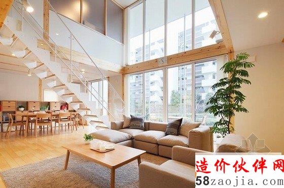 清新木质住宅设计,从巨大的玻璃窗看到的内饰,便呈现出了它的简约温馨,统一色调的清新木质地板,淡淡的烟灰色的沙发和毛毯,木藤编制的储物盒,玻璃磨砂隔断,没有多余的色彩和配饰,几盆充满生机的绿色植物很好的给整个木质起到了点缀的效果,这里的每一处,似乎都在追求一种品味有情调的生活,在生活中经营,在生活中精致,平实而不平庸。