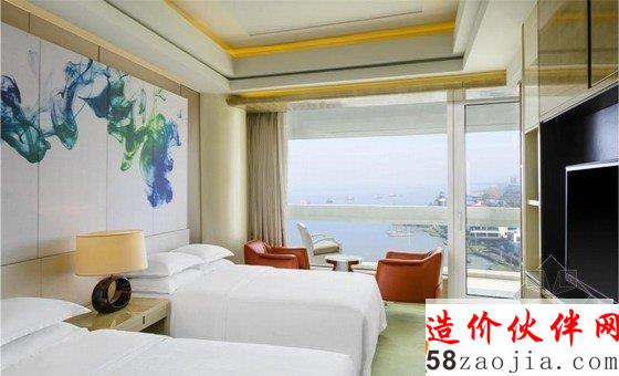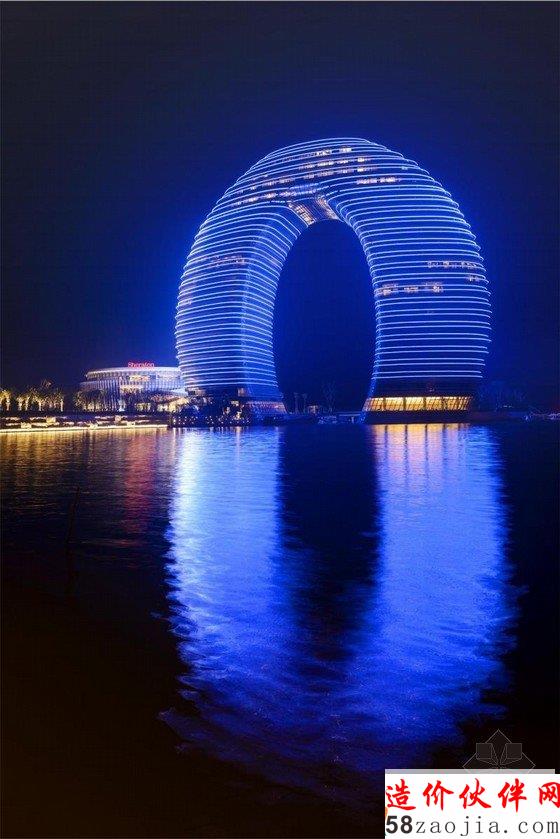 湖州喜来登温泉度假酒店坐落于浙江省湖州市风宜人的南太湖之滨,于2012年12月30日试运营。酒店由上海飞洲集团投资兴建,并由世界新锐建筑设计大师马岩松先生设计建造,由于其独特的指环外形备受关注。酒店拥有321间设备完善的客房和别墅。位于酒店主楼地下二层的喜来登水疗为宾客带来奢华的水疗体验和特色项目。在设计湖州喜来登温泉度假酒店之初,马岩松先生从中国古典建筑中汲取灵感,融入湖州水墨文化气息,力求以现代的手法表现水文化。马岩松先生认为,拱桥是中国古典建筑一个重要的元素,这便是酒店外观“指环”的由来。建成后的酒店倒影在太湖中,泛起圈圈涟漪,就像是一轮明月倒映在湖水中。不得不说这是对中国传统文化的一种全新阐释。