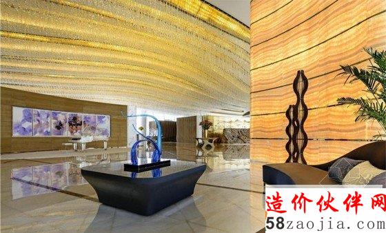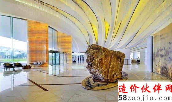 湖州喜来登温泉度假酒店内使用了大量的“玉石”和“水晶”作为装饰。也正因为如此,主楼“指环”的两侧分别使用“翡翠”和“水晶”来命名。而在美国HBA室内设计事务所的创意下,每一层,每个房间的户型都有所不同,同时大量使用“玉石”进行装饰,房型拥有复式客房和带独立阳台的湖景客房,所有客房内家私也均为进口定制。而整座酒店可称为是“集世界玉石之大成”:酒店大堂使用进口阿富汗白玉作为地面材质配合镶嵌巴西虎眼石作为点缀;大堂廊柱和天花板全部使用象征“财富”的黄水晶铺砌而成,而每根廊柱内所安装的灯光带将黄水晶表面的玲珑光泽显现无遗;与此同时整个大堂天顶采用阶梯设计,悬挂有20000串水晶灯,全部采用施华洛世奇水晶与欧洲天然水晶搭配组成,远远望去犹如浪花一般晶莹剔透;即使是前台柜台和礼宾柜台这样的细小之处,酒店的设计者也不辞辛苦的采用“红玫瑰”宝石和名为“丝绸之路”的石材予以装饰,而这也是对湖州这座作为古“丝绸之路”起点城市的致敬;在位于大堂内的盛宴标帜餐厅中,更是使用被誉为“帝王之石”的蓝宝石打造所有自助餐台。如果以上的玉材还无法让人眼前一亮,那么位于酒店大堂中央的“波斯玉原石”可以称为是镇店之宝了。“波斯玉”被称为玉中珍品,更因为其晶莹剔透、冰清玉洁的特性,被誉为“圣玉”。“波斯玉”的形成条件极其特殊复杂,它们大多来自于地下几十公里深处,经过几万年高温岩浆的雕塑,在地壳运动下被涌到地球表面,冷却后才可成型。而位于酒店大堂的这块原石可以说是更为稀有,其总重量达到了28吨之多。