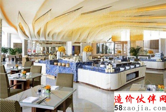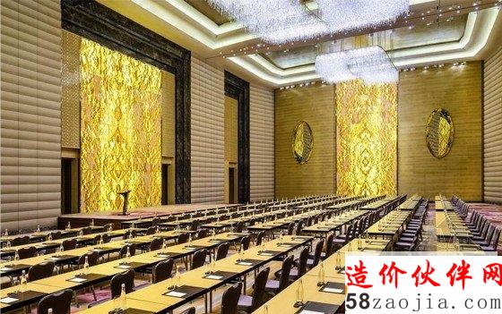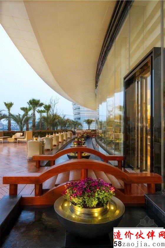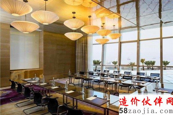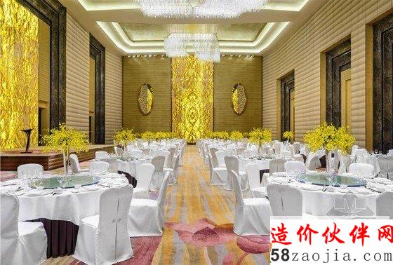 除了极富现代气息的“指环”形主楼,裙楼部分为酒店的宴会设施和中餐厅。大宴会厅面积达902平方米,层高12米,天顶上也大量使用水晶吊灯作为装饰,更为巧夺天工的是宴会厅墙壁上使用了整面的“黄水晶”切片。整座酒店共有超过2000平方米的会议及多功能空间供宾客选择,这也包括了位于酒店最高27层的“太湖厅”,300平米的面积配合全玻璃屋顶,可以俯瞰整座太湖的秀美。如果宾客想在太湖之滨举办户外婚礼,那坐落于太湖之上面积达1600平米的环形婚礼岛将是不二选择。当然宾客也可以选择在位于酒店一侧的“玫瑰花园”内进行一场热情的派对。