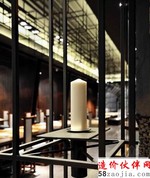 日本料理餐厅装修设计,在整体设计上追求着一种宁静的感觉,巧妙运用混凝土肌理的表现,期望塑造出一种沉稳内敛的感觉。入口处放上了一块很自然的原石,由原石的缝隙中静静的流水,代表着静中有动的生命力,许多铁艺的设计使空间更有丰富的层次感,视觉与味觉的完美结合,就是最佳的体验。