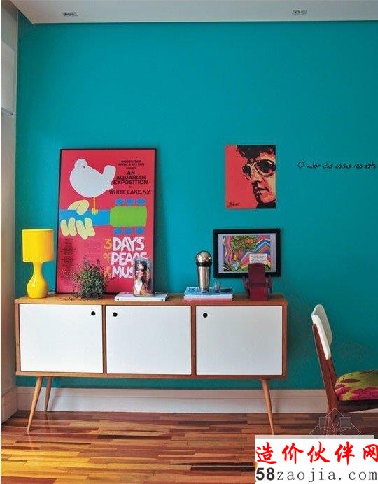 似乎巴西人的生活中总是不缺少色彩,在家中也是。看看这套色彩艳丽的住宅装修,将色彩进行到底。整体选择了深色的木质地板,客厅那面红砖墙没有经过任何修饰的出现在了视野中,配上白色的毛毯,舒适的家具,自然又舒适,主人大胆的将色彩进行搭配,整面湖蓝色和紫色的墙,或者是将各种色彩拼凑在一起,这个色彩的世界,仿佛可以感受到他们的热情。
