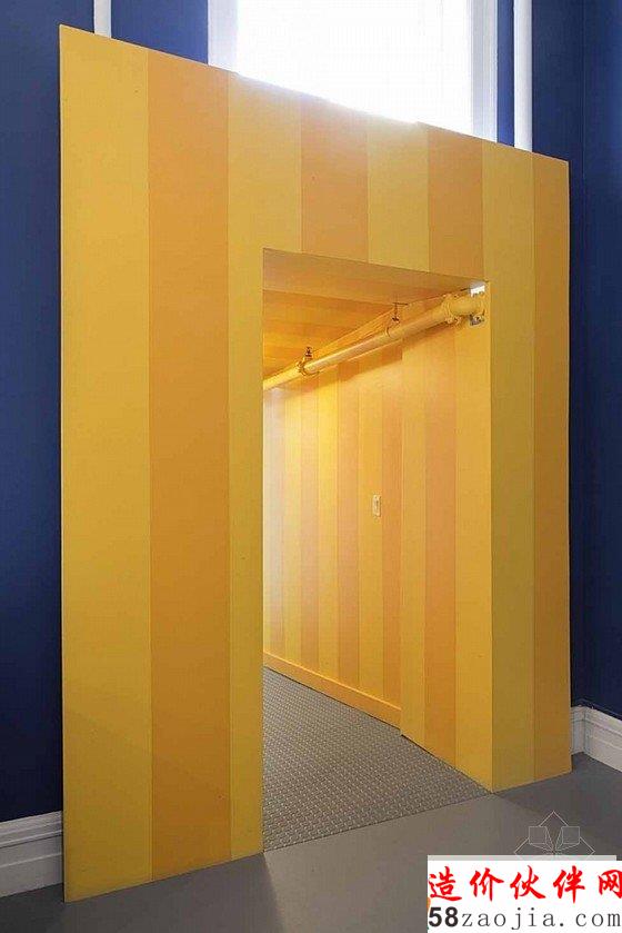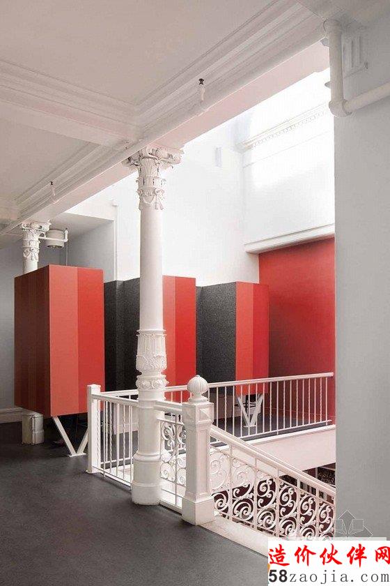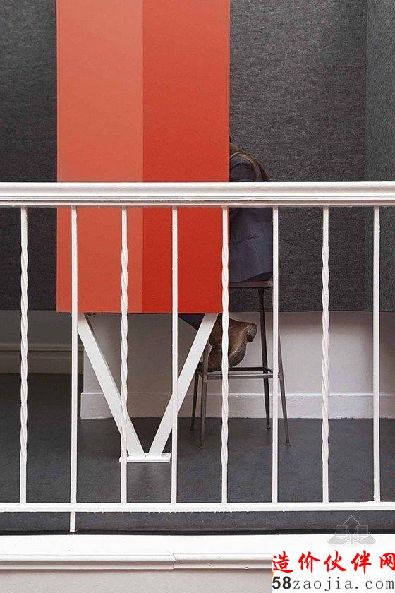 曼哈顿精致优雅的办公室装修设计,走进这家办公室,仿佛来到了一个精品酒店的大堂。办公室装修设计,优雅的地面华丽的灯饰,深色质感的沙发,前台后几幅色彩鲜亮的挂画,雕刻过的柱子,配上白色的墙,精致优雅质感十足,沿着铁艺扶手上楼是办公区域,电话隔间似的区域保护员工的隐私会谈,用红色和黑色点缀整个空间,用黄色点缀的三楼则是就餐区和休息区。公司整体简洁严谨,利用部分色块调节气氛。