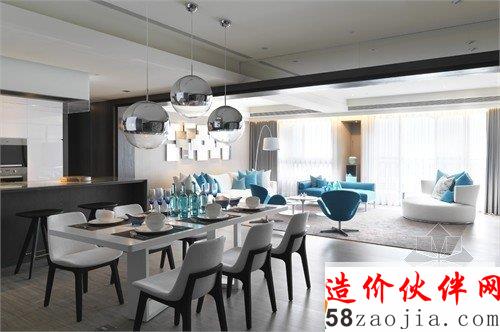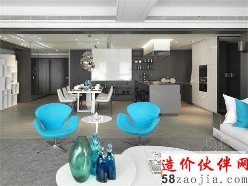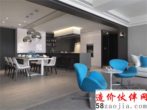 这是位于台湾新北市的时尚住宅,由缤纷设计江欣宜主设计,整体设计以白色为基调,将整体气氛营造的轻松自在,而深色系的开放式厨房,则是大家一展厨艺的后台,垂吊式的球形餐厅灯具,将众人瞩目的舞台拉回,从准备到用餐,都仿佛派对中身历其境的浪漫。另外更以深浅色系搭配明亮的蓝点缀其中,跳脱出一般黑与白的寂静,将家的氛围营造得更加活泼亮眼。为了打造令业主满意却有没有距离感的居住空间,家具以当代简约线条融入空间,为整体添加时尚简洁氛围。